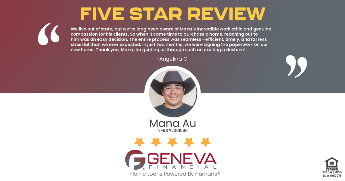 5 Star Review for Mana Au Geneva Financial Home Loans, Arizona