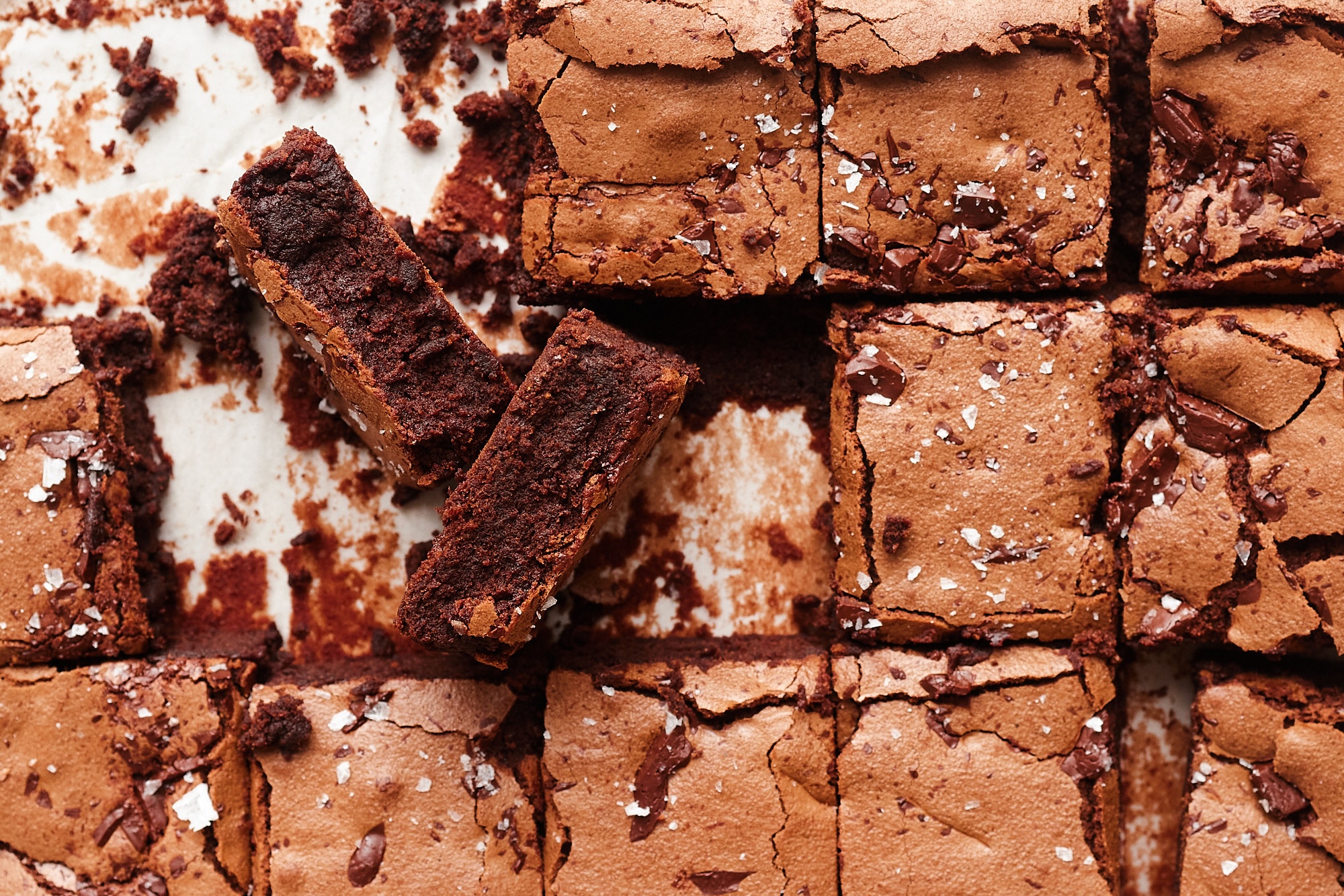 - After 10 minutes, remove the tin and gently bang it on the countertop three times, then sprinkle the surface with sea salt. Return the tray to the oven for another 10 minutes. At this point, check doneness by inserting a skewer into the edge; it should come out clean. Depending on the oven, an additional 2–3 minutes may be needed for a gooey center.