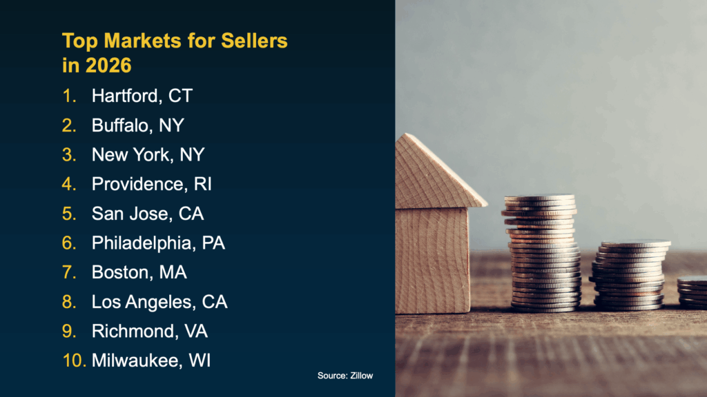 Zillow identified the following metros as some of the strongest seller markets for 2026, based on buyer demand, pricing momentum, and how quickly homes are expected to sell: